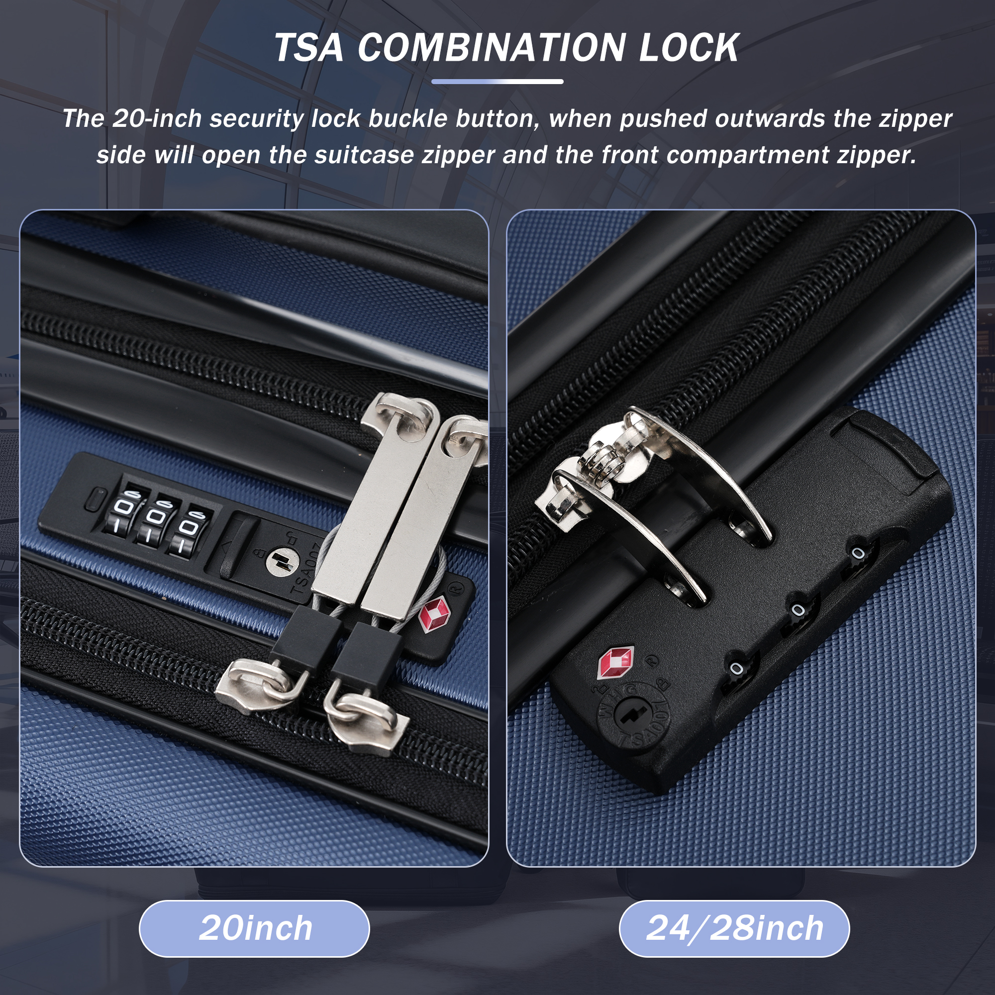 - Expandable Capacity: The 24" and 28" suitcases expand to provide extra packing space when needed — ideal for longer trips or additional belongings.