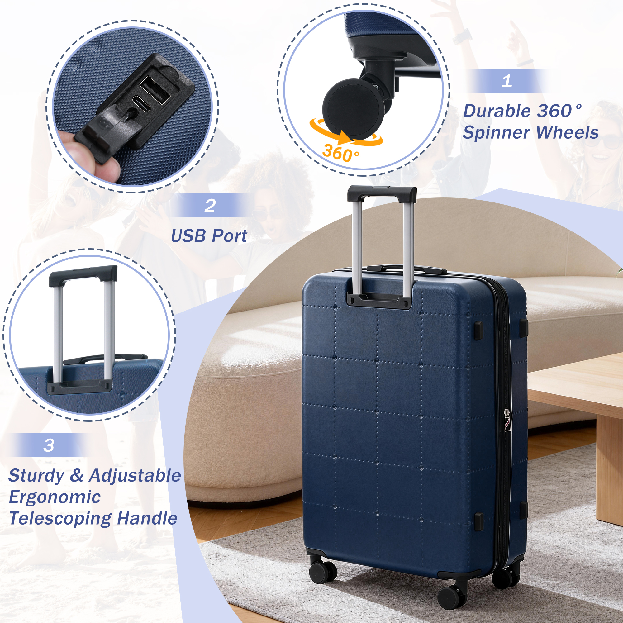 - Material: Premium ABS (hard-shell suitcases) + high-quality fabric (duffel & toiletry bags)